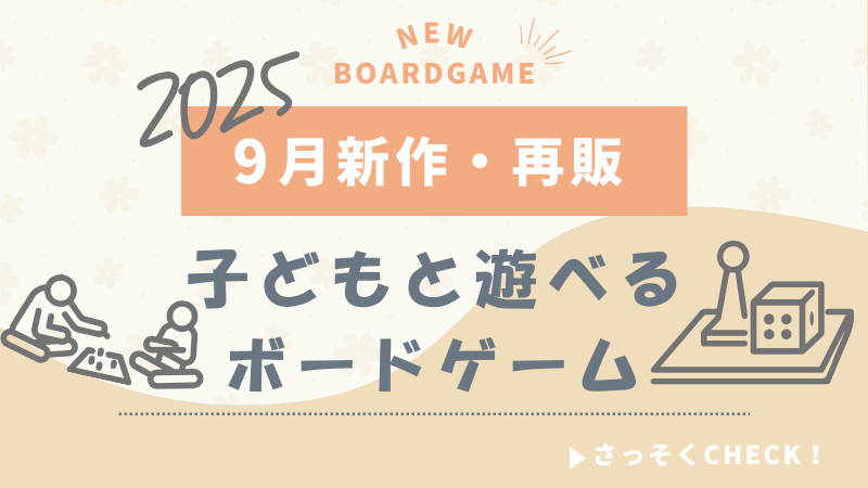 2025年9月に発売される8歳以下でも遊べる新作・再販ボードゲームの、内容・価格などの情報をまとめました。