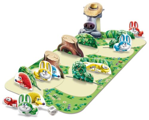 こそこそダッシュは、サイコロを振って動物を進め、オオカミに見つからないよう茂みや切り株に隠れながら、いち早くお家に帰すことを目指すゲームです。