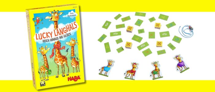 ラッキージラフは、チップをめくって同じマークの首パーツを集め、キリンの首をいちばん長くすることを目指すゲームです。