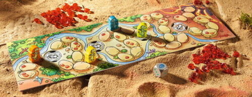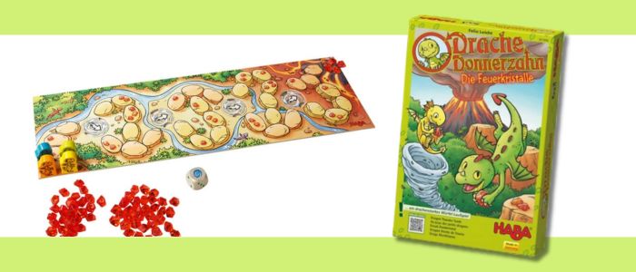 サイコロでドラゴンを進めながらコースを変化させ、ファイアークリスタルを集めて数を競うすごろくゲームです。