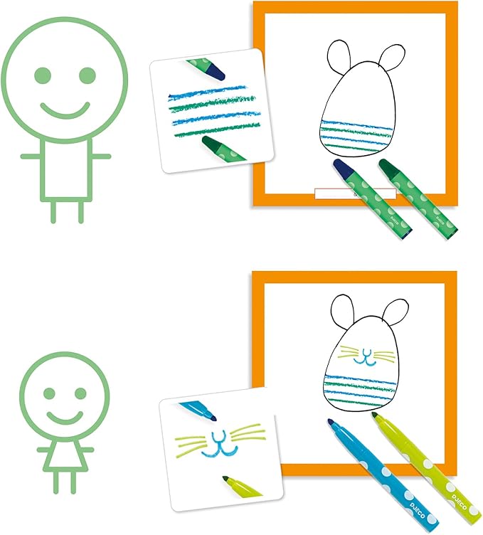 カードの指示に従って描き足していくだけで、絵を描くことに苦手意識がある子でも気軽に楽しめます。