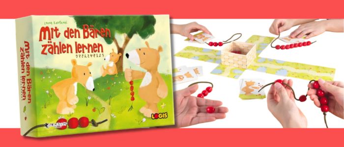 クマさんとかぞえようは、カードをめくっては指示個数分の野イチゴをもらったり、左右どちらかの人にプレゼントしたりして、自分のひもに通した野イチゴの数の増減を楽しむゲームです。