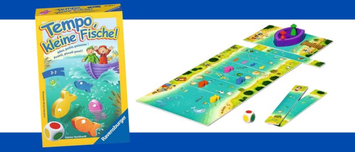 テンポフィッシュは、魚チームと漁師チームに分かれて追いかけっこをする、すごろく型ボードゲームです。