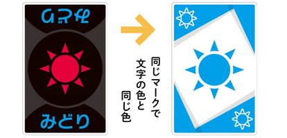 ▷手番で出せるカードは「前の人と同じ色か同じ数字」